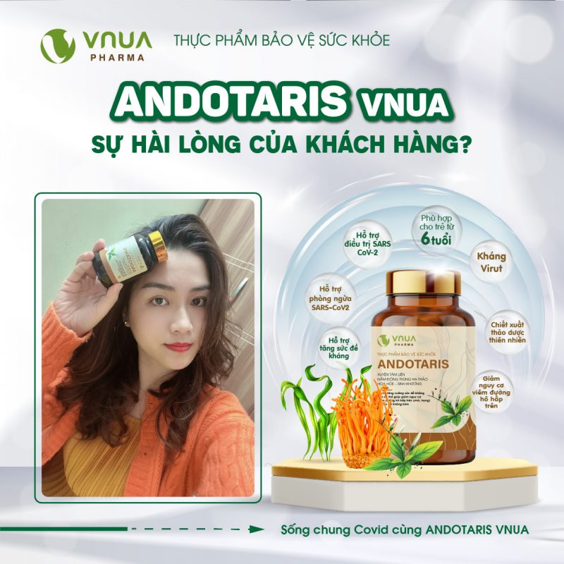 Chính vì thế, việc bổ sung cho cơ thể những hoạt chất chống virus là điều hết sức cần thiết như: xuyên tâm liên, đông trùng hạ thảo nuôi bằng tảo xoắn, tảo xoắn Spirulina,…Viên uống Andotaris VNUA được bào chế 100% từ các dược liệu quý trên, có công dụng hỗ trợ tăng cường sức đề kháng, kháng virus, phục hồi chức năng hậu COVID-19.