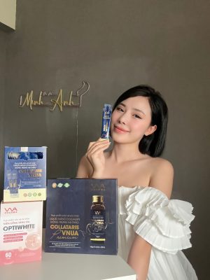 Trong mắt mọi người, Minh Anh luôn là người tràn đầy năng lượng tích cực và làn da trắng sáng, căng mịn luôn nổi bật trước đám đông. Khi được hỏi bí quyết chăm da cô tự tin trả lời rằng:” Em dùng collagen collataris và viên uống sáng da Optiwhite nhà Vnua Pharma, mọi người muốn da căng mịn, trắng hồng không tì vết thì hãy dùng bộ đôi này nhé”